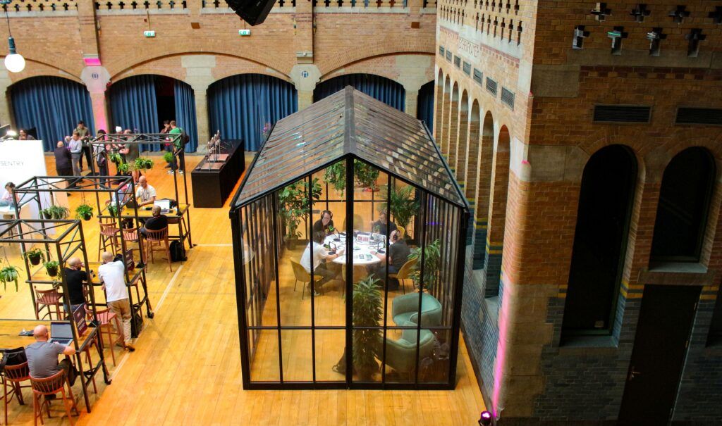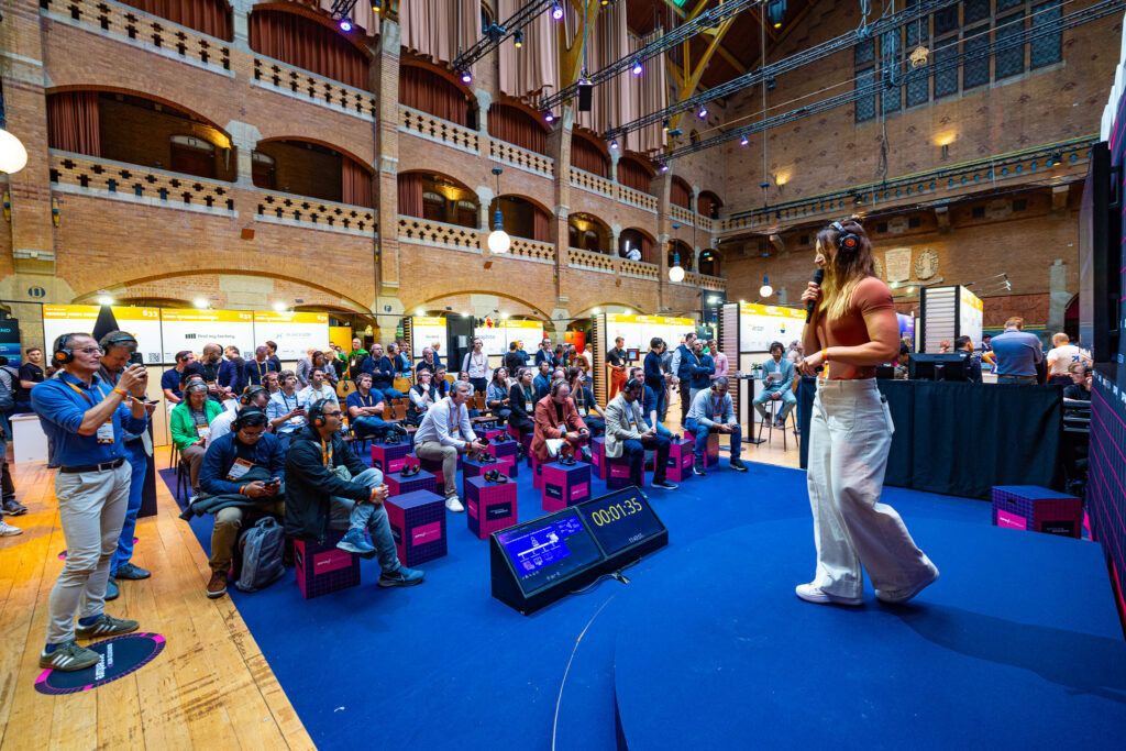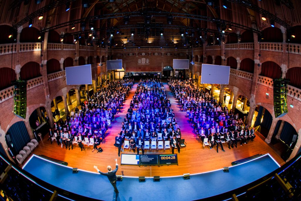 Celebrating a party in the Grote zaal of the Beurs van Berlage in Amsterdam